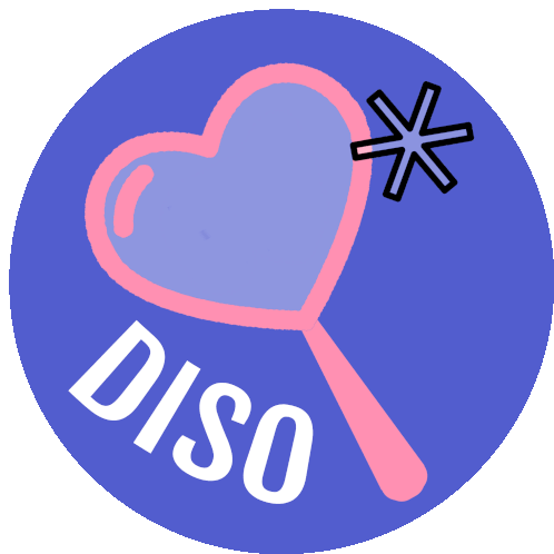 A vibrant sticker featuring a heart magnifying glass, 'DISO' text, and a 'LINK IN BIO!' call to action, perfect for 'Pinsbreaktheinternet' enthusiasts.