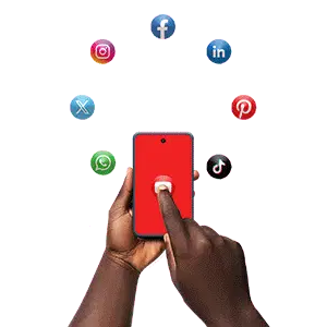 Animated sticker featuring a pixelated hand grabbing the Pinterest logo, associated with Pinterest Chan Media No Naka.