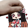 A pixel art hand gently squishes the head of Pinterest Chan Nezuko, a cute anime girl character.