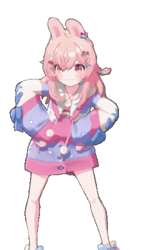 Pipkin Pippa, a pink-haired girl with bunny ears, stands with her arms crossed in this animated sticker.
