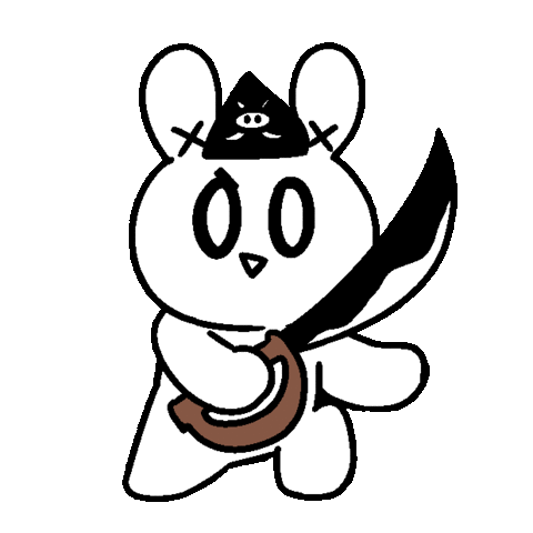 A cartoon rabbit character, dressed as a pirate with a hat and holding a large sword, ready for adventure.