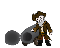 A pixel art pirate from 'Pirating With Chains' loads himself into a cannon and is launched, crashing into the word 'WEEKEND'.