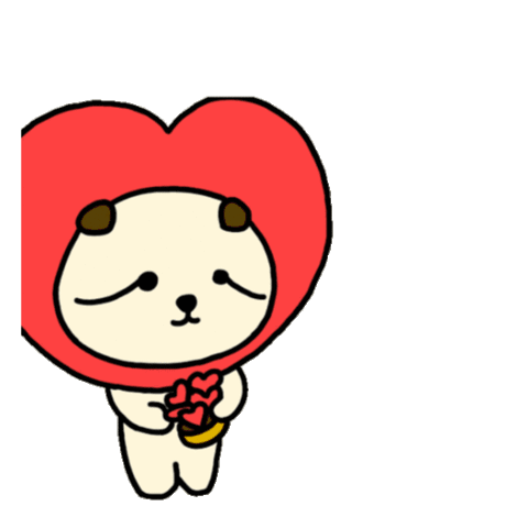 Cute cartoon bear in a heart hat holds tiny hearts, with more hearts floating nearby, expressing love.