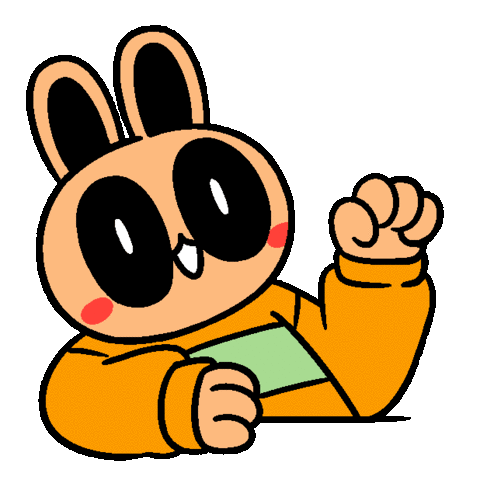 A cute, shy bunny character with rosy cheeks points to a thought bubble containing a pink heart, expressing love or a crush.