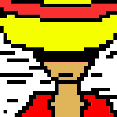 An animated pixel art sticker featuring Monkey D. Luffy from One Piece, wearing his iconic straw hat and red shirt, blinking his eye.