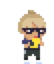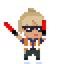 Mrp, a pixel art character, energetically wields two glowing red sabers, ready for action.