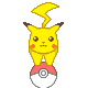 Pikachu pixel art sticker, rolling forward with a lightning bolt on its head, in a cute animation.
