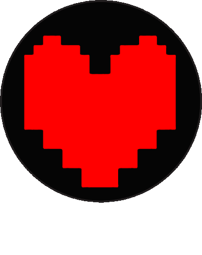 a black circle with a red heart in the middle