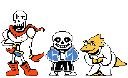 papyrus , sans , and alphys are standing next to each other in a pixel art .