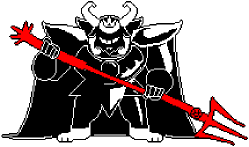a pixel art of a devil holding a trident and a sword .