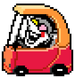 Spamton G Spamton from Deltarune drives a pixelated toy car, a fun and energetic animation for fans.