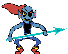 a pixel art drawing of a cartoon character holding a spear