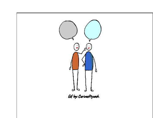 Piyueshmodi Curiouspiyuesh presents an animated sticker of two stick figures having a conversation.