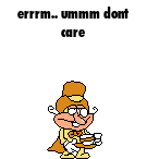 The pixel art character Noise from Pizza Tower dismissively states "errrm.. ummm dont care" while holding pancakes.