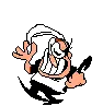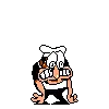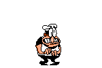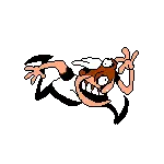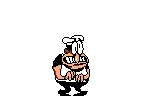 Peppino from Pizza Tower, a pixel art character, crouches ready with a shotgun in hand, showcasing his determined expression.