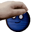 A hand gently touches a blue Solarball character, which features a distinct face, from the Planet X series.