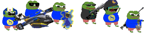 B Jay's Planetside frogs, armed with guns and wearing blue shirts, ready for action in this animated sticker.