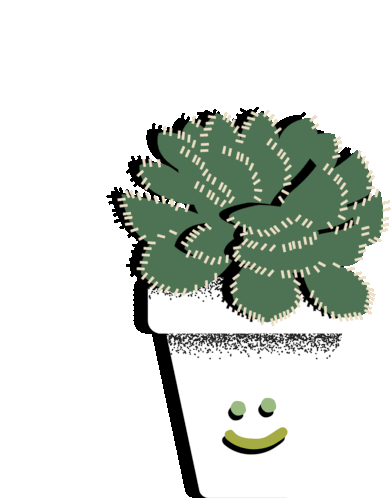 An animated sticker of a cute succulent plant in a white pot with a friendly smiling face.