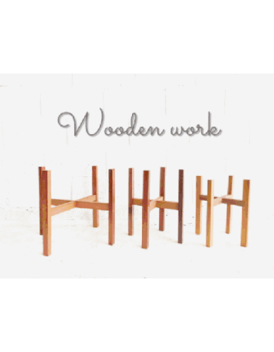 A stylish wooden plant stand, featuring a minimalist design with four legs and a cross-brace, perfect for home decor.