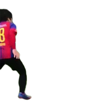A person in a blue and red football jersey with number 18 on the back, in an active pose, ready to play soccer.