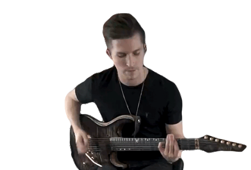 Cole Rolland intensely plays an electric guitar, showcasing his skills as a musician.
