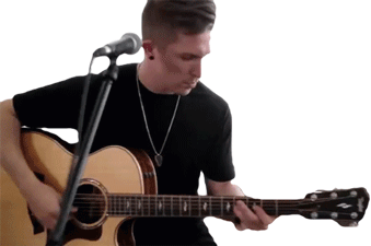 Cole Rolland performs live, playing an acoustic guitar and singing into a microphone with passion.