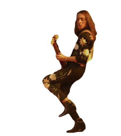 Jake Kiszka, guitarist for Greta Van Fleet, playing an electric guitar while walking on stage.