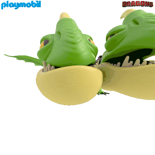 Two animated Playmobil Dragons heads roar and move their mouths in this fun sticker.
