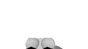 Percy Tamabruti, a black and white cartoon character, plays a game with a controller, featuring a screen on its chest displaying abstract shapes.