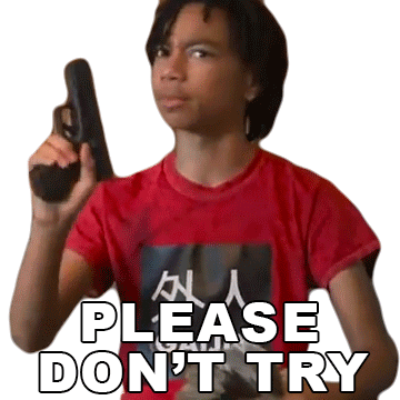 Ybn Nahmir holds a gun with a serious expression, displaying the text 'PLEASE DON'T TRY' as a warning.