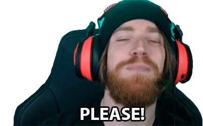 Luba Tv, wearing a beanie and headphones, makes an earnest, pleading face with 'PLEASE!' on screen, asking for something.