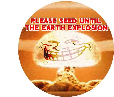 A humorous sticker featuring a mushroom cloud with a Trollface, accompanied by the text 'PLEASE SEED UNTIL THE EARTH EXPLOSION'.