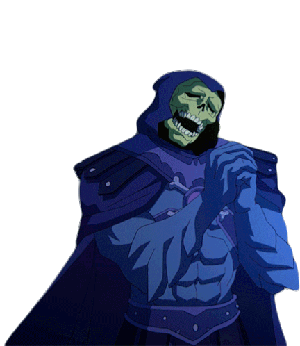 Skeletor from Masters of the Universe Revelation pleading with clasped hands, looking hopeful.