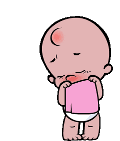 Pobaby Mhb, the cute cartoon baby, appears shy and embarrassed, blushing while holding a pink cloth.