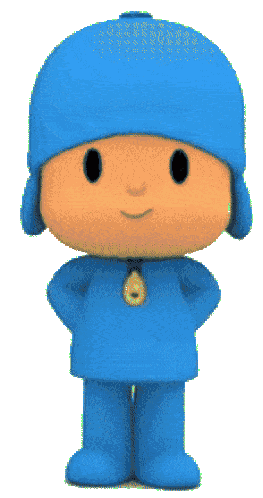 Pocoyo, the cheerful blue cartoon character, blinks playfully, wearing his signature blue hat and outfit.