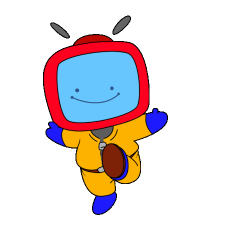 Animated sticker of Jesse Ps, the Podawful character with a red TV head and yellow jumpsuit, happily bouncing.