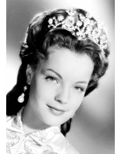 a woman wearing a tiara and earrings is smiling in a black and white photo