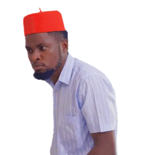 Mazi Nduka from Mark Angel Comedy delivers a 'Point Of Correction' with a thoughtful expression.
