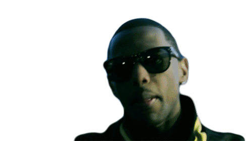 Fabolous points his finger upwards, wearing sunglasses and a dark jacket, conveying a message of faith or direction.