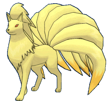 An elegant Ninetales from Pokemon, a majestic fox-like creature with nine flowing tails, standing gracefully.