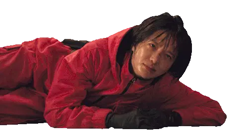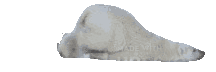 A furry polar bear crawls across a white background, dragging its hind legs.