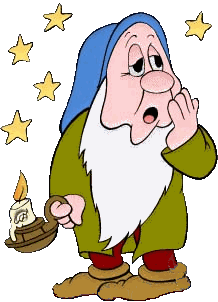 Polskie Radio Disco Polo sticker featuring a cartoon dwarf yawning, looking tired with stars, holding a lit candle.