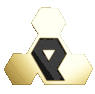 A rotating 3D polygonal gold logo with a black triangular symbol, representing Kntg.
