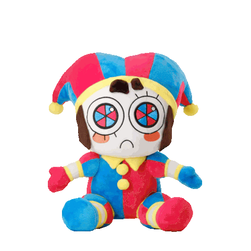 a stuffed clown with a sad look on his face is sitting on a white background