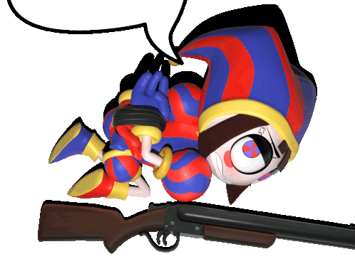 a cartoon character is tied up with a rope and a shotgun