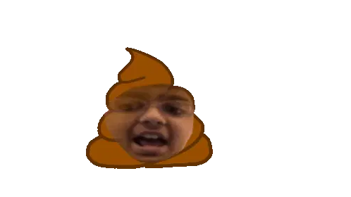A cartoon sticker featuring a blurry blue spiral object with a fork-like hand, next to a brown swirled pile resembling poop or soft-serve.