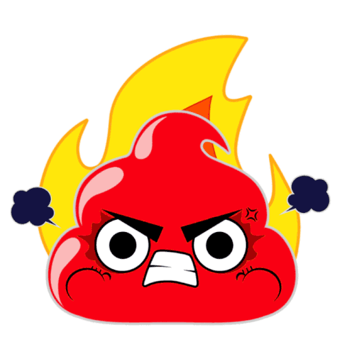 An angry red poop emoji with flames behind it and smoke puffing from its sides, showing intense frustration.