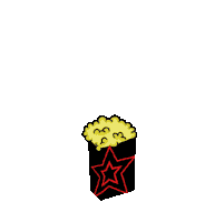 An animated sticker featuring a black popcorn box with a red star, overflowing with popcorn, and the text 'CINEMA TIME' above it.