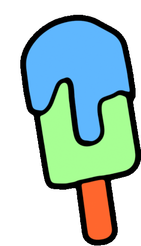 A refreshing animated sticker of a melting blue and green popsicle on an orange stick, perfect for summer fun and sweet treats.