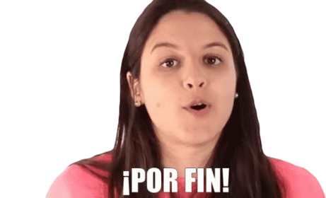 Natalia exclama '¡Por Fin!' com alívio, ideal para expressar o final de uma espera ou a culminação de um evento.